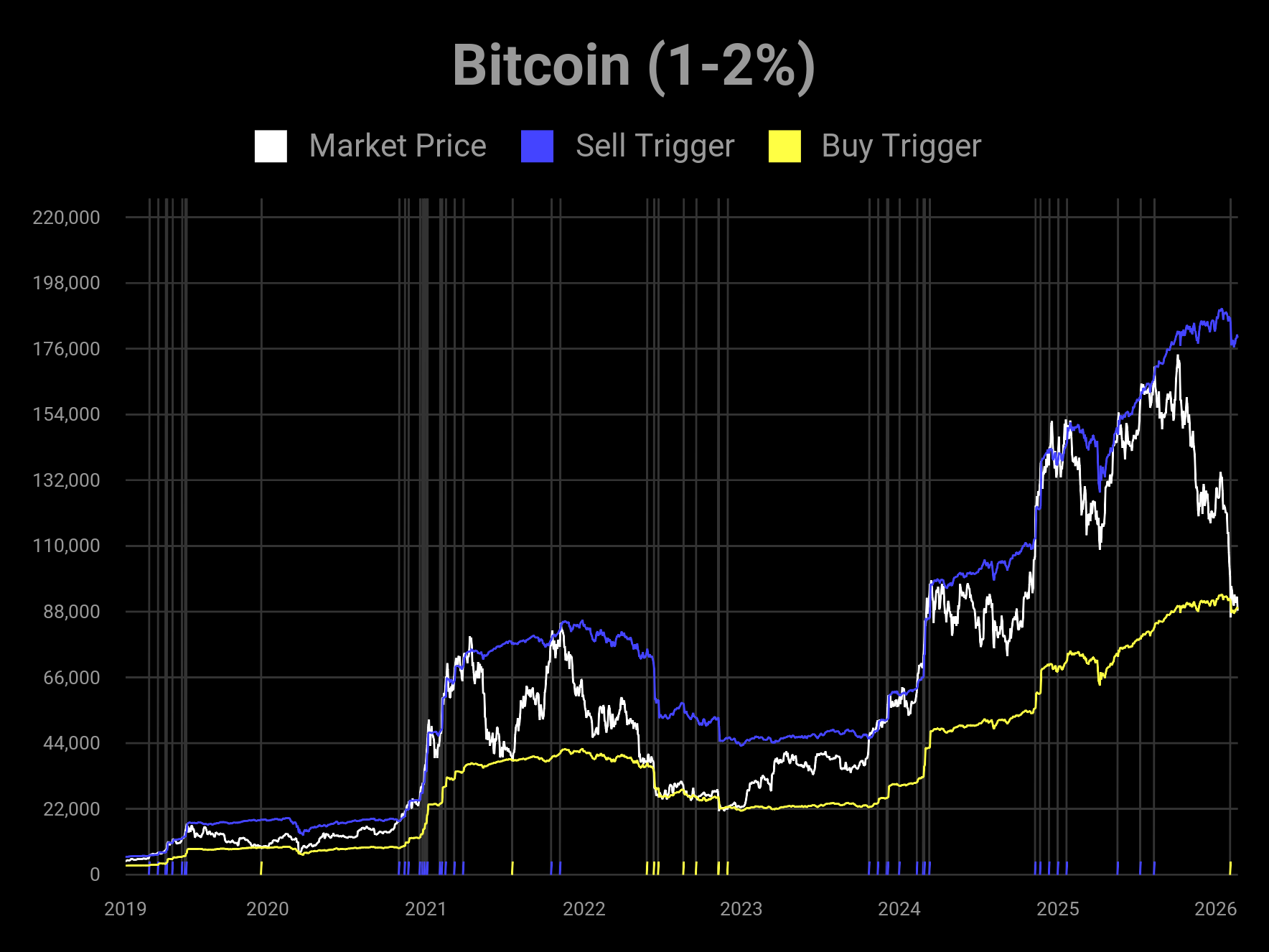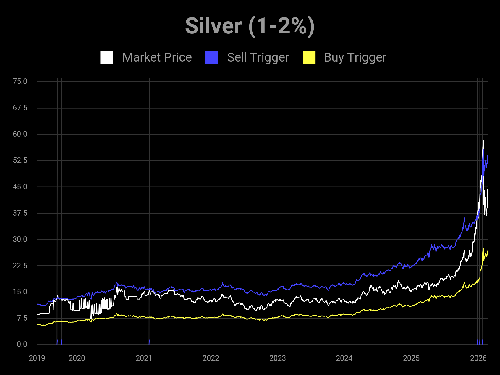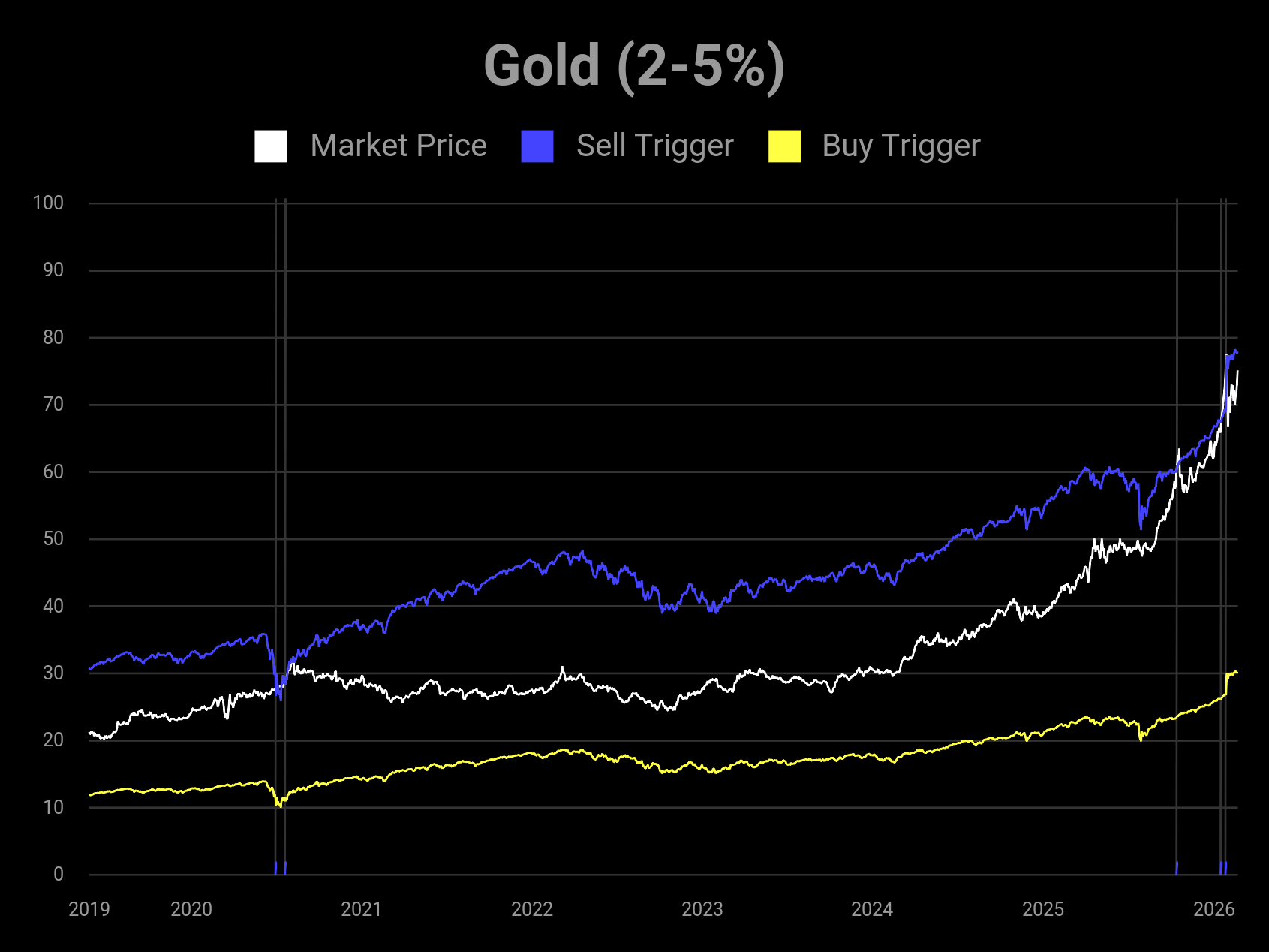 This is not a short-term trading reference. The buy & sell triggers are very far apart, generally spanning years. Meaning that you *must* be a long-term investor in these asset classes to use these signals. If you don't believe in the asset long-term, you won't find value in these models.